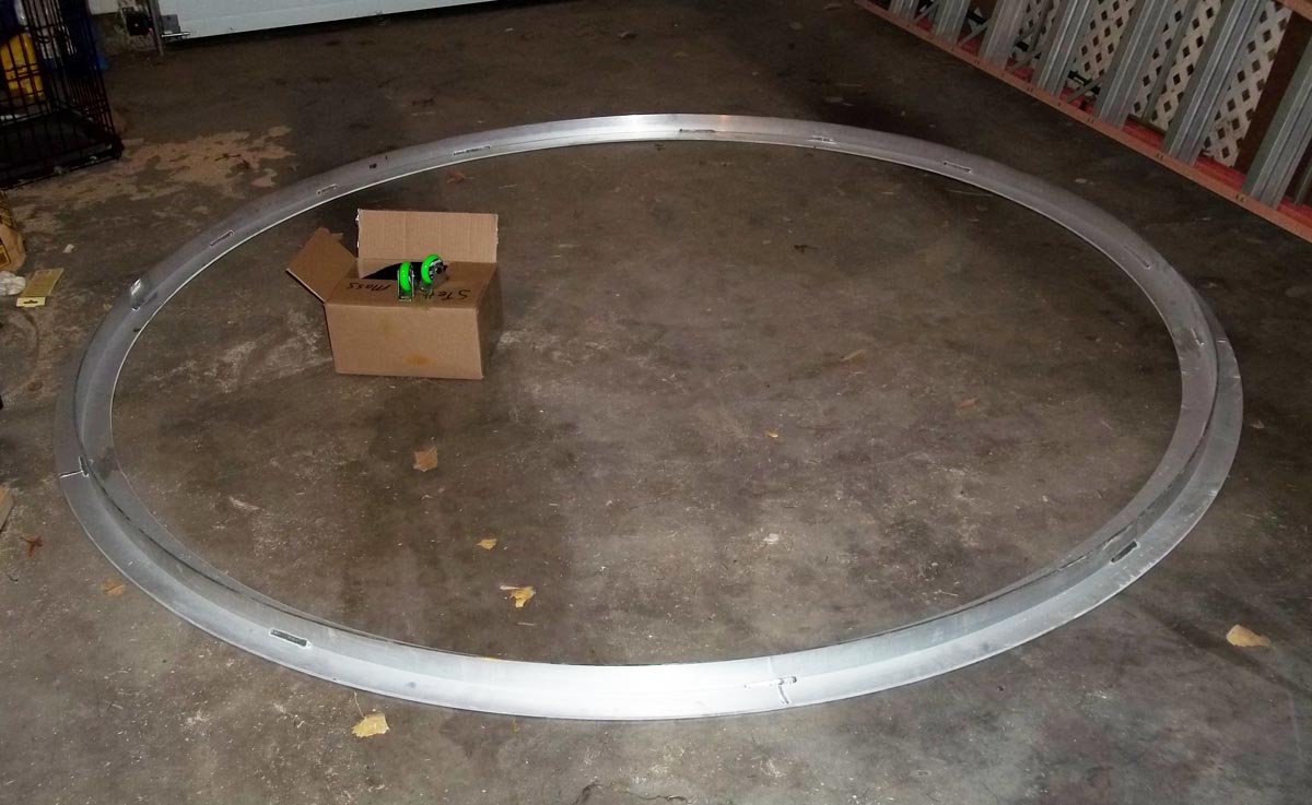 | Figure 10. The retrofit solid aluminum track for the dome. The box contains new heavy-duty casters supplied by PolyDome for use with the new track. |