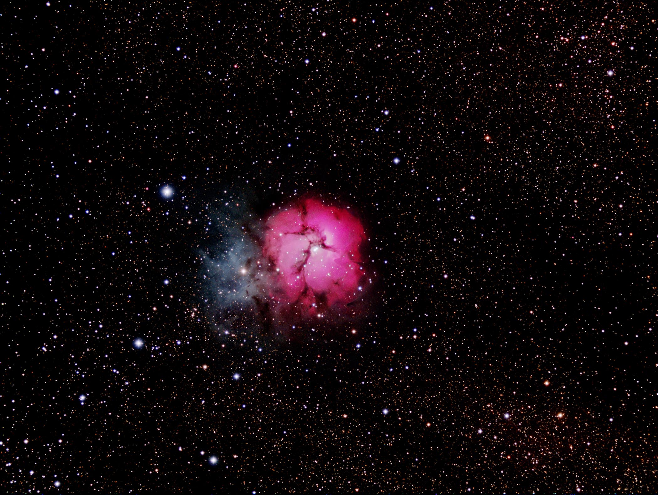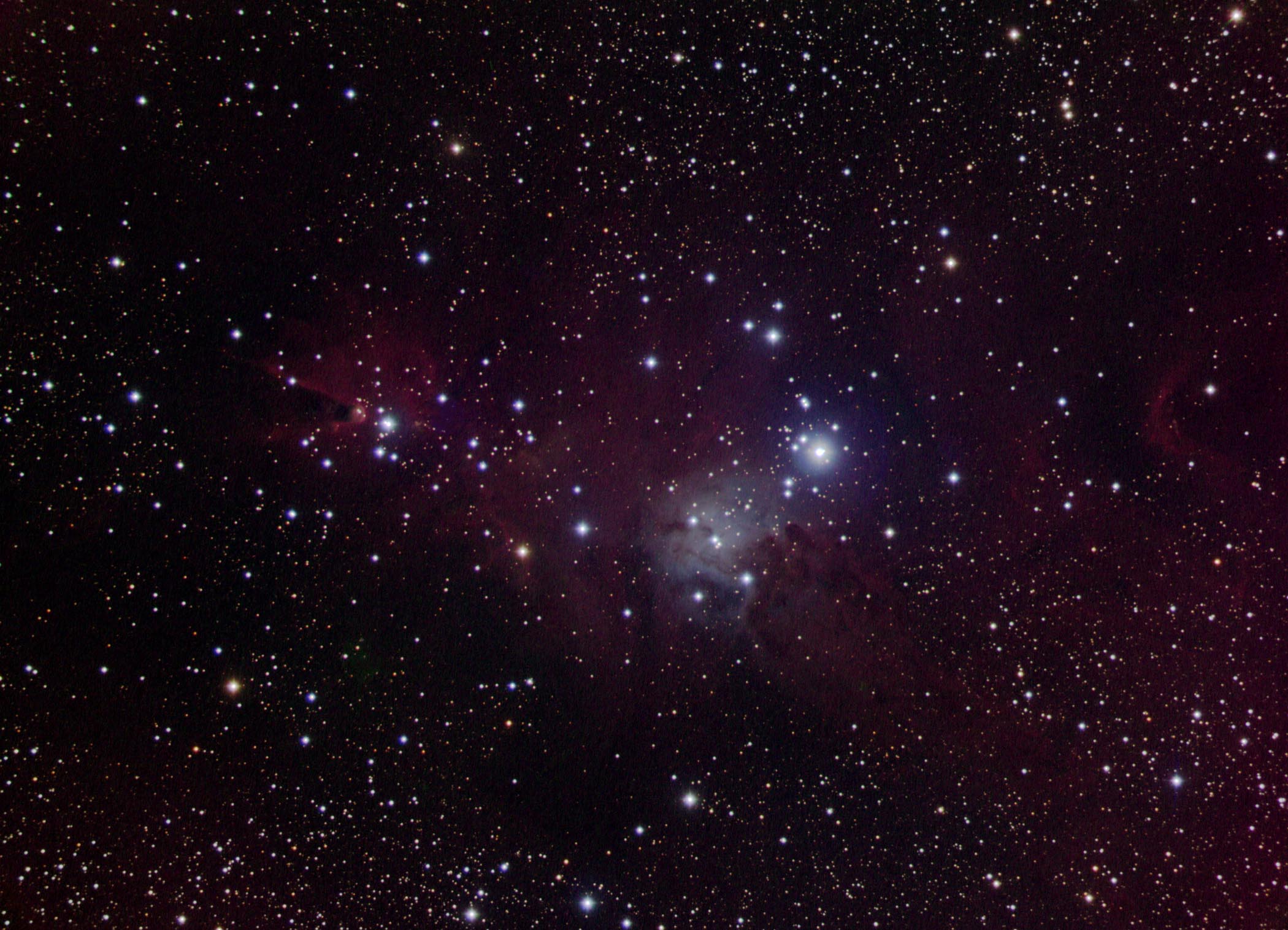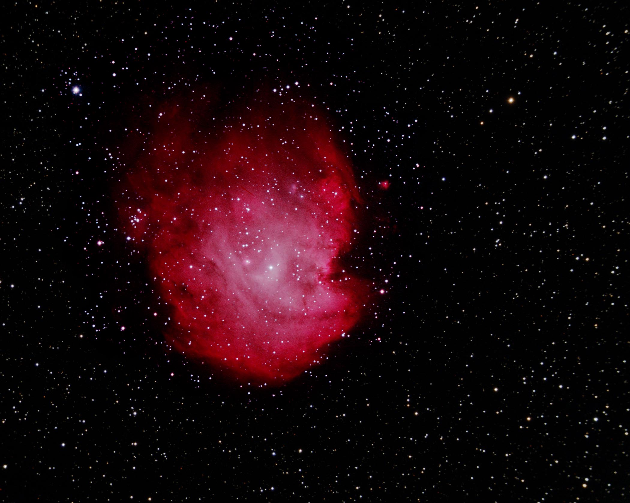 This gallery displays some of the imagery of astronomical objects acquired at SOCO. You can access the imagery in two ways. The chart below shows the distribution of imaged objects across the sky. Colored dots indicate the location and type of object (see the legend at the bottom of the chart). If you mouse-click on a dot, an image and description of the object will appear. Note that some older versions of browsers don't support this clickable chart (i.e., you can't click on a dot). If you can't click on the chart, or if you don't want to use the chart, thumbnails of all imaged objects are displayed down below the chart. Mouse-click on a thumbnail to display a full-size image and description of the object.
